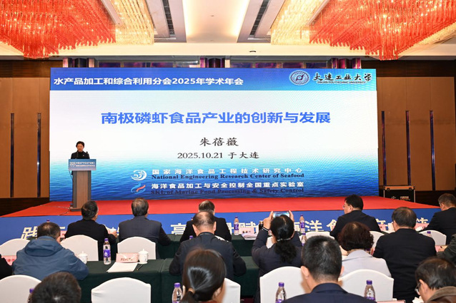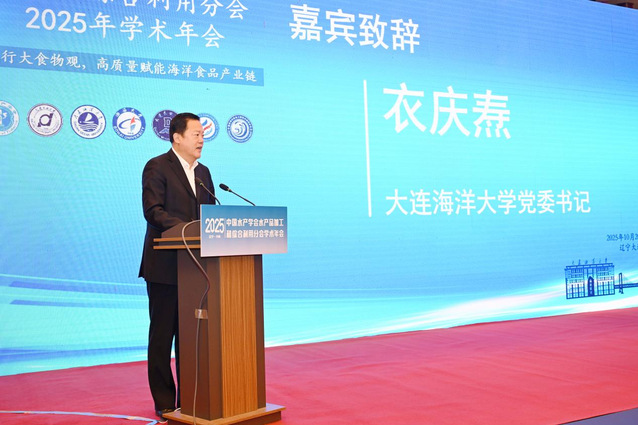 10月20—23日,由我校牵头承办的中国水产学会水产品加工和综合利用分会2025年学术年会在大连举行。校党委书记衣庆焘、校党委副书记李智军、大连民族大学副校长张树彪、大连工业大学副校长周大勇、渤海大学副校长李学鹏、河北农业大学副校长桑亚新、大连市人民政府副秘书长张晓峰、水产品加工和综合利用分会主任委员林洪教授、中国水产学会副秘书长赵文武出席会议。来自国内相关高校、科研院所、企业的500余名代表参加会议。大会开幕式由校长杜明主持。