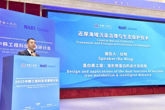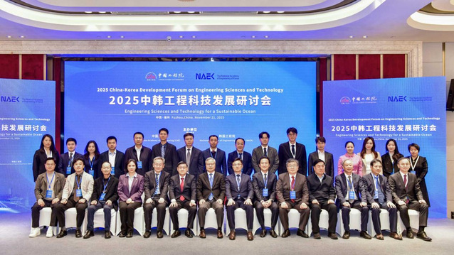 11月20日至22日,由中国工程院与韩国国家工程院联合主办的“2025中韩工程科技发展研讨会”在福州举行。会议以 “工程科技助力海洋可持续发展”为主题,聚焦两国海洋科技领域交流合作,共商海洋资源可持续利用与绿色发展路径。中国工程院院长李晓红院士、副院长李仲平院士,韩国国家工程院院长尹義埈院士、副院长韓承憲院士出席并致辞,我校校长杜明教授应邀参会并作学术报告。