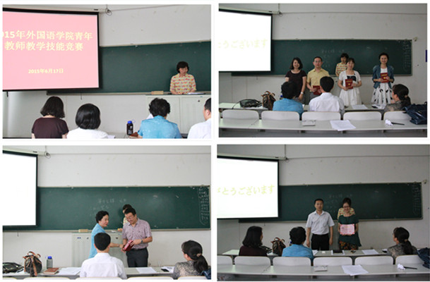 6月17日下午,外国语学院在獐子岛教学楼110教室举行了2015年青年教师教学技能竞赛,教务处副处长王涛应邀出席活动。学院领导、学科带头人及各教研室主任担任本次比赛评委,来自三个教研室的6位教师参加了竞赛。