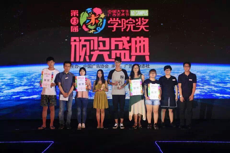 近日,第十三届 (2014-2015) 全国大学生广告艺术节学院奖大赛获奖结果揭晓,并在中央电视台梅地亚会议中心举行了颁奖仪式。我校艺术与传媒学院学生周夏蕊作品《不装,我们不装》获银奖;谢小芳的作品《好吃的,小快克》获铜奖;两件作品的指导教师张兴全获得全国优秀指导教师奖.我校两名获奖学生参加了颁奖仪式,并登台领取了获奖证书和奖金。