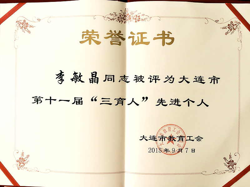 日前,大连市教育工会公布了大连市第十一届“三育人”先进集体、标兵、先进个人评选结果,我校理学院荣获 “三育人”先进集体称号;海洋科技与环境学院教师李敏晶荣获 “三育人”先进个人称号。