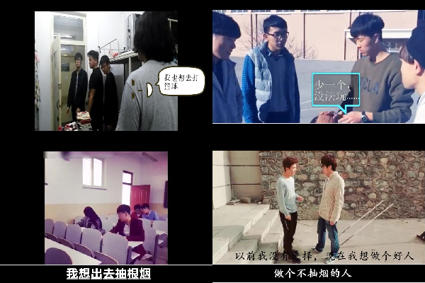 视频选题贴近学生日常生活,用夸张逗趣的演绎,使禁烟宣传片充满活力,发人深思。从剧本编写、剧情排练、视频的布景录制到后期的剪辑修片,都融入了师生的智慧和创造。大家在共同制作视频的过程中,真切的体会到吸烟对健康的种种危害,提高了学生抵制吸烟的防范意识和自觉性。希望能通过这种形式,共同呼吁师生,崇尚明净书香校园,远离烟草侵袭心灵。