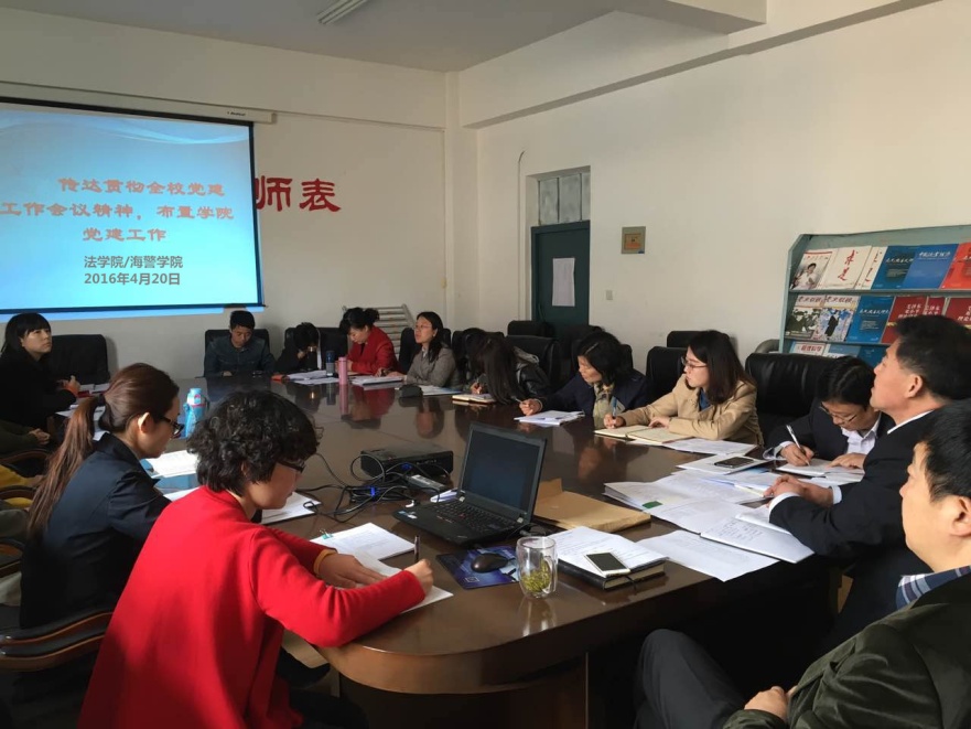 4月20日下午,法学院(海警学院)党员学习会议在学院6楼会议室举行。学院领导班子以及全体教工党员参加会议。
