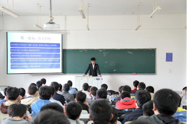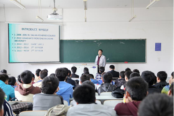 4月26日,航海与船舶工程学院在獐子岛教学楼206教室召开“百名船长进课堂 百家企业进校园”系列活动第三讲。我校2010届航海专业学生刘海涛、金玉雷应邀回校作讲座。学院院长于晓利、党总支副书记韩延波、辅导员以及13、14级航海类专业学生聆听了讲座。