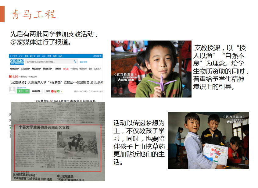 3月初,为围绕校党委“党的建设年”总体工作部署,增强思想教育工作的针对性和实效性,我校启动了“分享青春故事 感悟精彩人生”第二届大学生励志成才主题教育活动,开展“十大优秀班级标兵班”、“十佳大学生”、“励志成才大学生”、“科技创新之星”、“创业之星”评选活动。在2015年进行的第一届评选活动中,我校涌现出“辽宁好人•最美大学生”曲平、“大连市大学生标兵”褚长桥、“大连市自励自强标兵”白宇婷等多名先进个人,在校内外产生广泛的影响。