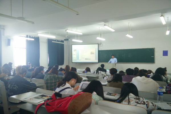 5月11日,外国语学院在獐子岛教学楼204教室召开日本冈山商科大学留学项目宣讲会。日本冈山商科大学国际交流室胡勇彬次长来访学院,与80余名学生进行面对面交流。