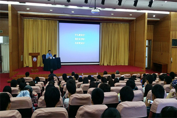 杜文龙就“什么是安全”“我们安全么”“怎样更安全”三个部分进行阐述,横较纵比周边各国与我国现阶段关系,主要就“一岛三海”、“一大众小”进行深入探讨,并结合朝鲜测试洲际导弹发动机、美国劳伦斯号导弹驱逐舰在永暑礁的第三次“航行自由”活动等国际时事动态具体分析了中国国家安全面临的长远战略性挑战。他指出现阶段我国战略选择方向已从捍卫生存向护卫发展转型。互动环节中,杜文龙耐心解答了现场同学们的提问,幽默风趣的语言及深入浅出的分析给师生留下了深刻印象,现场气氛十分热烈。