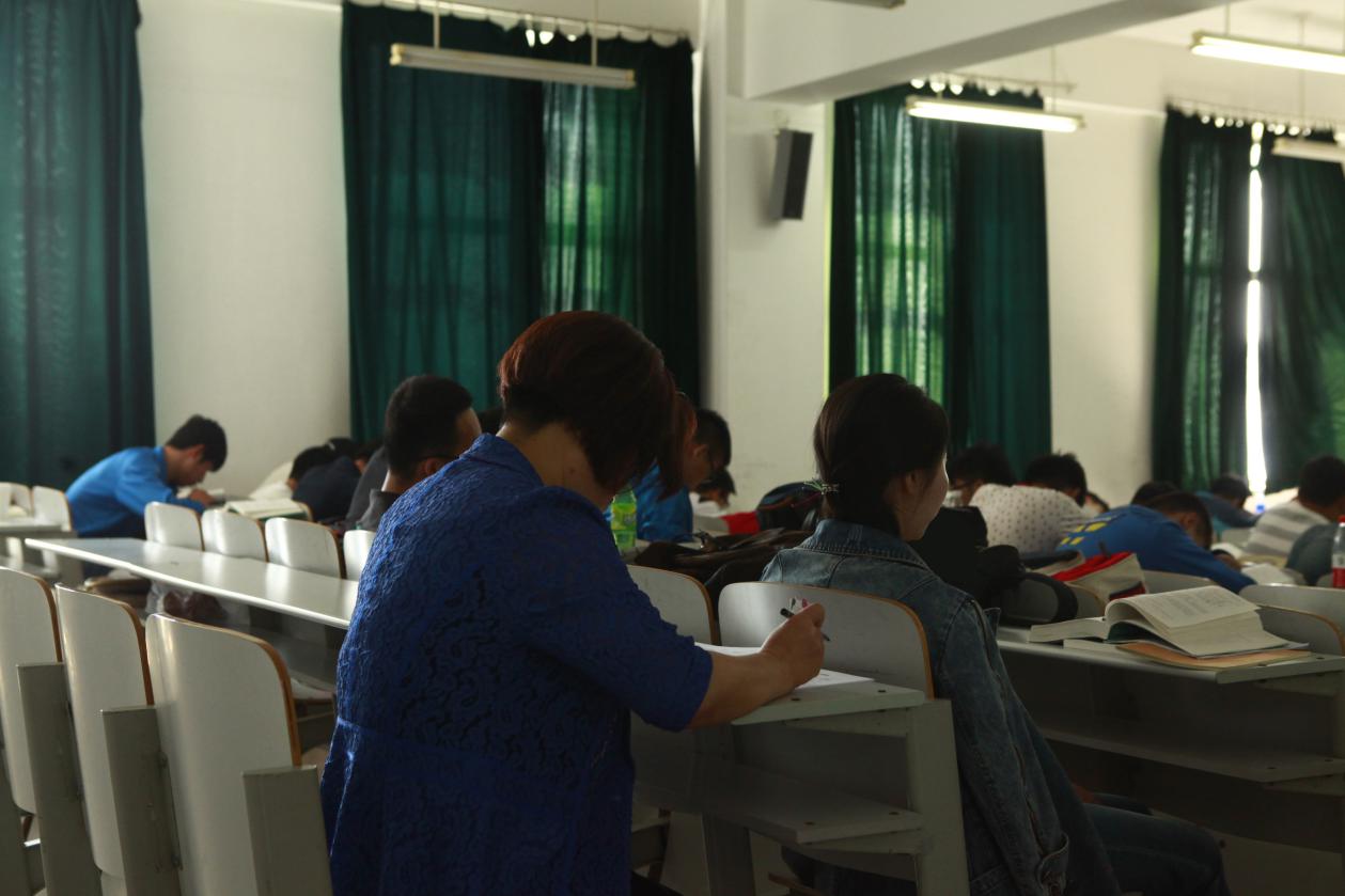 刘静艳提前来到教室。课堂上,她一边认真听讲,一边详细在听课记录本上记录。