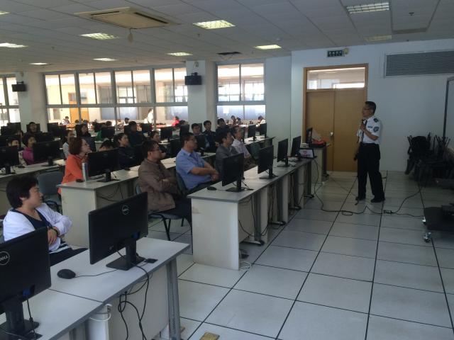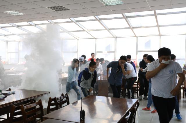 辽宁政安消防知识宣传中心王教官应邀作了关于“图书馆消防疏散演练——疏散引导员培训”的报告。在保卫处有关人员的整体调度下,启用消防广播、打开消防通道、模拟火情现场。在现场人员积极配合下,疏散演练圆满完成。