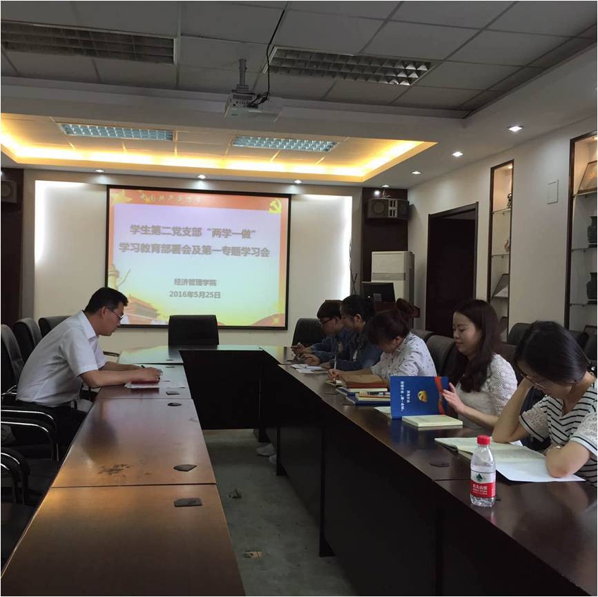 5月25日,经济管理学院学生第二党支部在学院会议室602召开“两学一做”学习教育布置会及第一次集中学习会,学院党总支副书记、学生第二党支部支部书记于洋及支部学生党员参加会议。