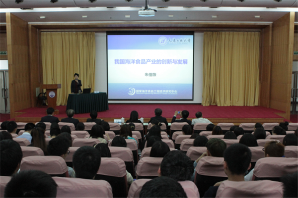 仪式结束后,朱蓓薇院士在图书馆报告厅为我校食品科学与工程学院、水产与生命学院、海洋科技与环境学院的师生作了题为“我国海洋食品产业的创新与发展”学术报告。朱蓓薇院士介绍了我国食品工业的发展状况和海洋食品的发展现状,从营养性、健康性、消费个性化、生活快节奏和食品安全性角度精辟阐述了科技如何满足海洋食品的发展需要,从基础理论研究突破、技术研究创新和产业发展创新角度精准提出了海洋食品重点领域创新路径。