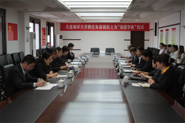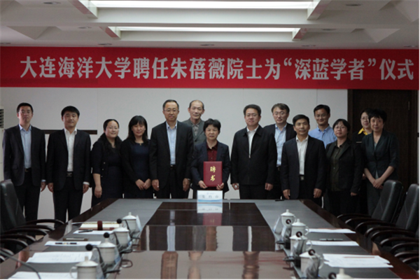 仪式上,姚杰与朱蓓薇院士签订了“深蓝学者”协议书,并向她颁发我校“深蓝学者”聘书。吴连臣在会上详细介绍了朱蓓薇院士的个人简介、学术成果与重大贡献。