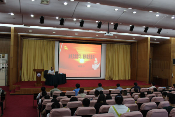 王太海教授以“加强党章学习,提高党员意识”为题,阐述了“两学一做”学习教育开展的时代背景和重要意义。通过对党章党规、马克思主义中国化理论成果和习近平总书记系列重要讲话精神、新时期党的重大理论、路线方针政策等方面对如何开展“两学一做”进行详细解读。期间,他旁征博引,剖析经典,并以江姐、雷锋、焦裕禄、毛丰美等优秀共产党人为例,阐述了共产党员必须要具有坚定的理想信念、廉洁自律、大公无私等品质,做到“讲政治、有信念,讲规矩、有纪律,讲道德、有品行,讲奉献、有作为”,时时铭记、事事坚持、处处上心,充分发挥共产党员的先锋模范作用。