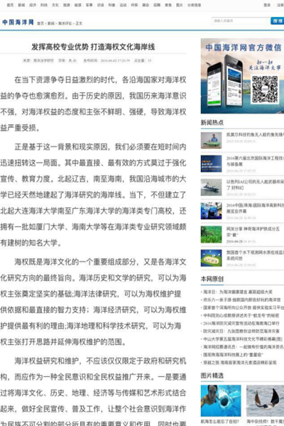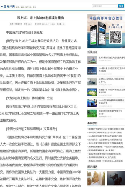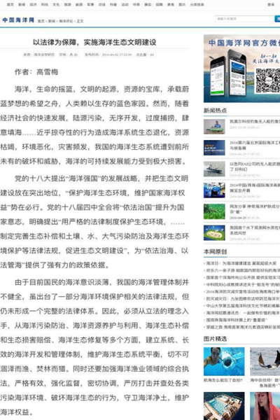 5月17日以来,中国海洋网连续刊登了我校教师撰写的三篇论文,分别是法学院(海警学院)裴兆斌的《海上执法体制解读与重构》、教学质量管理与保障处何杨的《发挥高校专业优势 打造海权文化海岸线》、学科与研究生管理处高雪梅的《以法律为保障 实施海洋生态文明建设》。