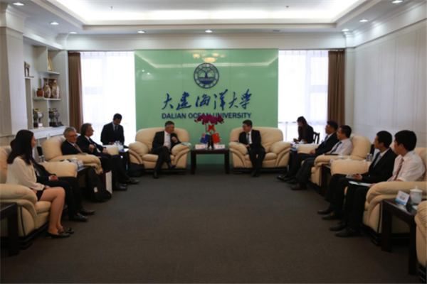 会见之后,Dave Cull一行来我校访问并出席大连海洋大学中外合作办学项目落成仪式。姚杰亲切会见Dave Cull一行。