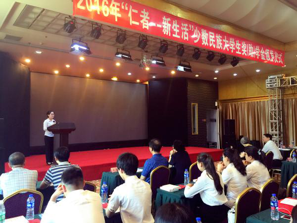 6月6日,2016年“仁者——新生活”少数民族大学生奖(助)学金颁发仪式在沈阳市东佳瑞士酒店多功能厅举行。辽宁省教育基金会理事长金竹花、新生活集团(中国)有限公司副总经理房建出席仪式。我校5名获奖学生参加仪式,经济管理学院热伊莱∙伊敏作为学生代表上台演讲。