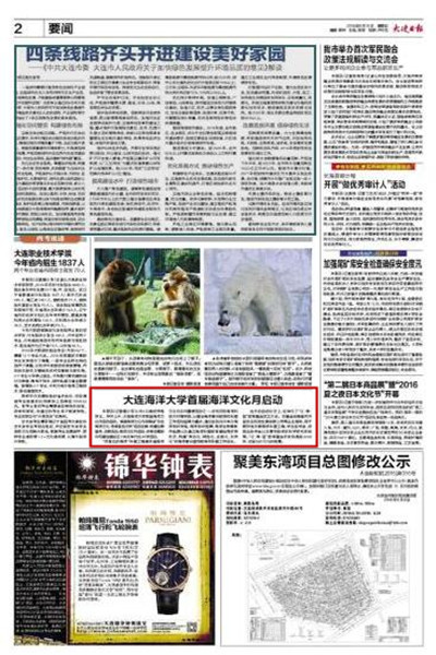 6月9日、10日,《中国海洋报》第1805期第A2版以“大连海洋大学启动首届海洋文化月”为题、《辽宁日报》第2版以“全省举行世界海洋日系列宣传活动”为题、《大连日报》第2版以“大连海洋大学首届海洋文化月启动”为题,对此次活动进行了详细报道。
