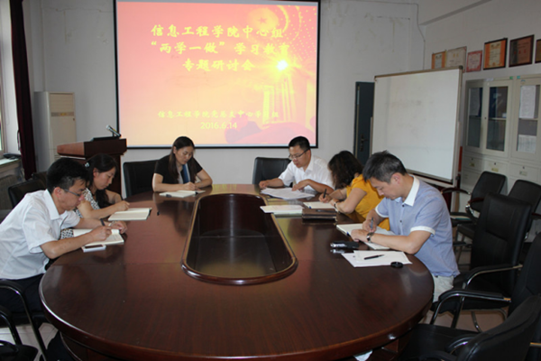 6月14日,信息工程学院党总支理论学习中心组在学院会议室召开“两学一做”学习教育专题研讨会。会议由学院党总支书记杨建明主持,学院中心组全体成员参加学习。