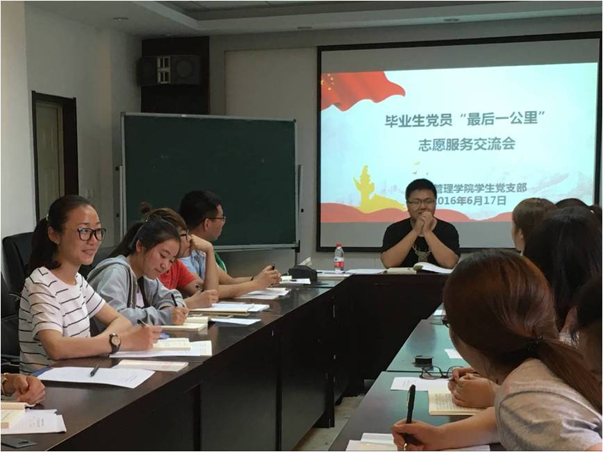 6月17日中午,经济管理学院在学院会议室602举办毕业生党员“最后一公里”志愿服务交流会,学院全体学生党员参加会议。