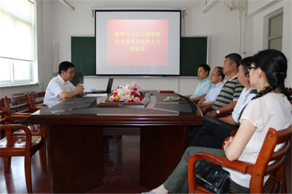 6月16日,海洋与土木工程学院在学院会议室召开民主党派及无党派人士座谈会。九三学社上官子昌、王志云、陈凤山,中国民主同盟苏健,无党派人士桂劲松参加座谈,会议由学院党总支书记周永主持。