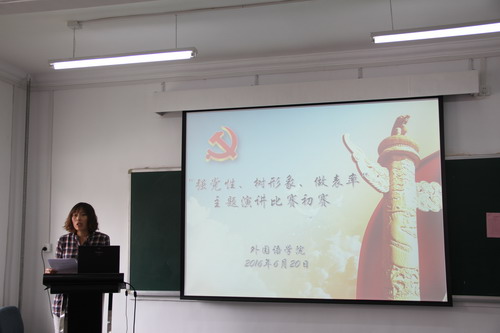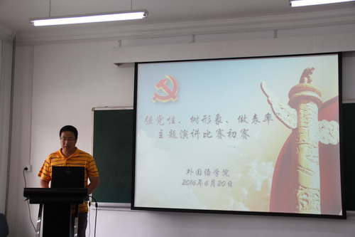 6月20日下午,外国语学院党总支在学院会议室组织了“强党性、树形象、做表率”主题演讲比赛,学院全体党员参加活动。比赛由学院总支书记范秀敏主持。