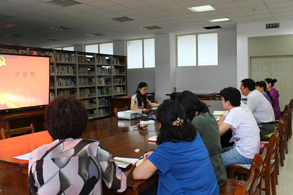 6月23日,图书馆第一党支部在图书馆保存本书库召开大会,支部书记部先红讲了题为“中国梦”的专题党课。