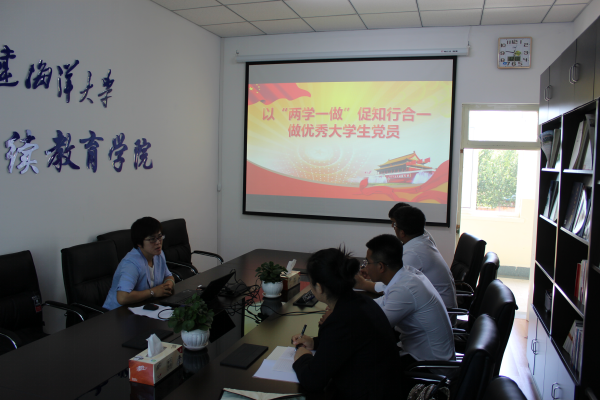 为深入推进“两学一做”学习教育,按照校党委和学院党总支“两学一做”学习教育实施方案的总体安排,6月24日上午,技术与继续教育学院党总支书记邱金英在学院会议室为学生党员上了题为“以‘两学一做'促知行合一 做优秀大学生党员”的党课。