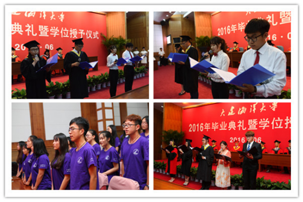 “我们毕业了!将告别师长,暂抛依恋,肩负祝福鼓励,开拓全新天地;我们毕业了!将带着校训,让母校桃李下自成蹊。长亭外,古道边,芳草碧连天,让我们一起铭记,一起呐喊:毕业不分离,我与母校永结同心!”再见了,大海大!再会吧,新校友!