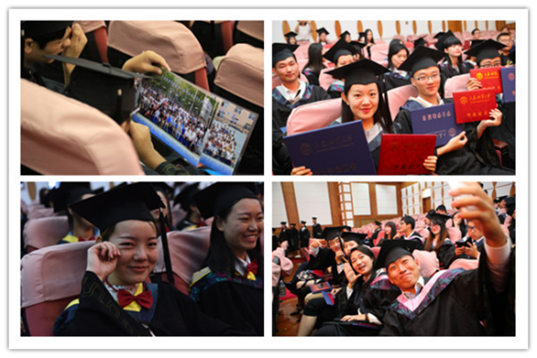 互敬、握手、拨流苏、合影-----连续四天的授位仪式上,校长姚杰将这一系列的动作重复了4000多遍,为每位毕业生颁发学位。个别同学会大胆地拥抱一下男神校长,连续抬手4000多次,还要保持微笑,看来当校长除了需要智慧,还需要体力呀!虽然辛苦,但他认为值得:“平常学生和校长的接触还是少,借毕业这个机会,大家能近距离接触,对在校生和毕业生都是激励。希望能给学生留下一辈子的美好记忆 。”