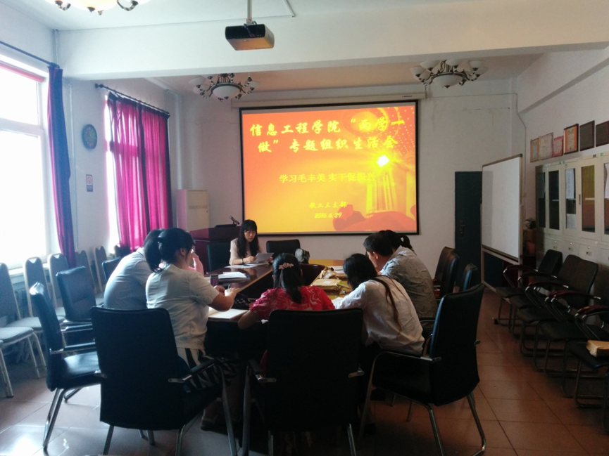 6月29日,信息工程学院教工第三党支部在学院会议室召开了“学习毛丰美实干促振兴”专题组织生活会。支部党员参加会议。