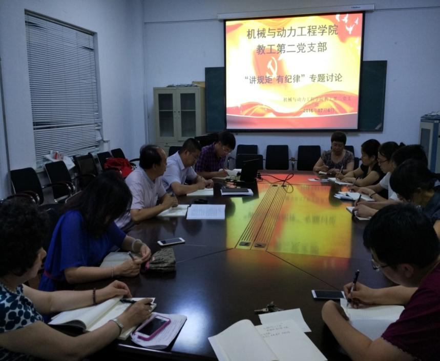 7月6日,机械与动力工程学院教工第二党支部在学院会议室开展“讲规矩、有纪律”专题讨论。