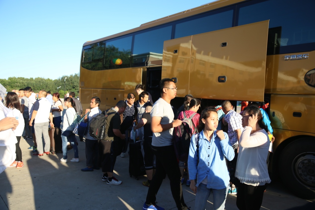 “车来了,快接人!”负责接站的学长学姐们举着自己学院的牌子,每当接站车到来时,他们都向车辆蜂拥而聚,生怕自己的学弟学妹找不到方向。