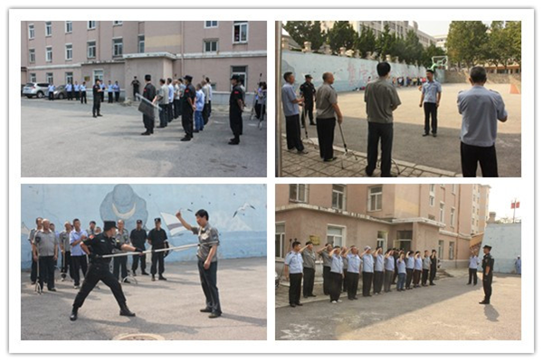 培训中,内保支队高校第一派出所桑正舟大队长详细讲解了如何根据突发情况判明警情迅速报警,如何使用防暴叉、防暴盾牌、伸缩棍等器械制服不法分子等,所有参训人员按照要求,进行了现场演练。