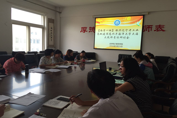 9月21日,法学院(海警学院)在学院会议室召开“振兴辽宁老工业基地,建设高水平海洋大学——大海大教师责任研讨会”,全体教工党员参加会议,会议由学院党总支书记刘海廷主持。
