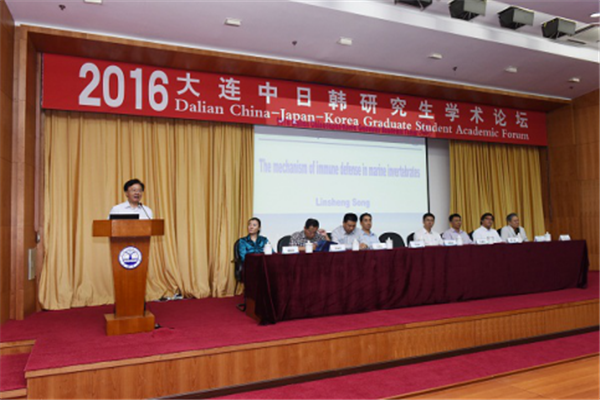 为促进国内外海洋水产领域研究生学术交流,激发科研创新意识,进一步提升我校研究生的培养质量,加快我校研究生培养的国际化进程,9月24日,由辽宁省海洋水产领域研究生创新与交流中心主办,我校承办的“2016中日韩研究生学术论坛”在我校图书馆报告厅隆重召开。开幕式由水产与生命学院副院长湛垚垚主持。副校长宋林生、我校国际交流与合作处、研究生学院以及水产与生命学院相关负责同志出席开幕式。