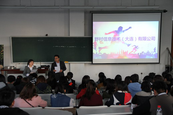 10月26日,外国语学院在综合实验楼阶四举办了野村信息技术(大连)有限公司专场宣讲会。2013和2014级日语专业学生参加本次宣讲会。野村信息技术(大连)有限公司总经理代理高泽学、公司内部日语学习指导教师渡边建一、人事部部长王艳、人事部主管葛宁、业务部部长李帝、孙玲玲参加会议。学院辅导员王庆丰主持会议。