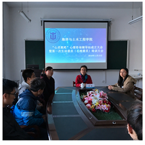 为更有效地开展学生心理健康教育,更好地关注学生成长,11月15日,海洋与土木工程学院召开了“心灵氧吧”二级心理辅导站成立暨心理委员培训大会。