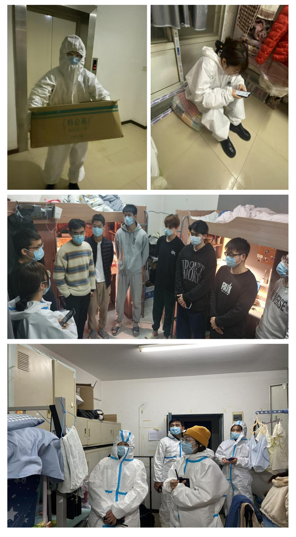 在学生公寓,戴鑫每天穿上防护服,戴上消毒手套,竭尽全力守护同学们的健康。乍一看她乖乖巧巧的,但小小的身体里仿佛蕴含着巨大能量。她建立了各专业、各宿舍疫情防控工作群;多次召开寝室长会,积极做好相关信息的上传下达,增强与同学们协同作战的合力;有序组织同学们完成物资分发工作;提醒同学们勤洗手,做好宿舍卫生工作。纵使汗水浸透了防护服,她仍然毫无怨言的奔波在为学生服务的第一线。那些承载物资的箱子很重,即使是一个男生抱起来都有些费力,但她从未退缩,每次都与其他男老师一起搬运物资。网络谣言伴随疫情而来。她在完成繁重的日常工作的同时,及时推送官方信息,引导学生树立正确的疫情防控意识,带头做防控知识的传播者、疫情谣言的制止者、健康校园的守护者。她关心同学们的生活和心理状况,坚持每天走访宿舍,提醒同学关注各地防疫政策,和大家聊家常,分享自己大学时期有趣的事情来缓解大家焦虑的心情。“大家可以利用这段时间好好学习!”“咱们再坚持坚持,疫情很快就会过去。”“只要大家有需要,随时联系我。”