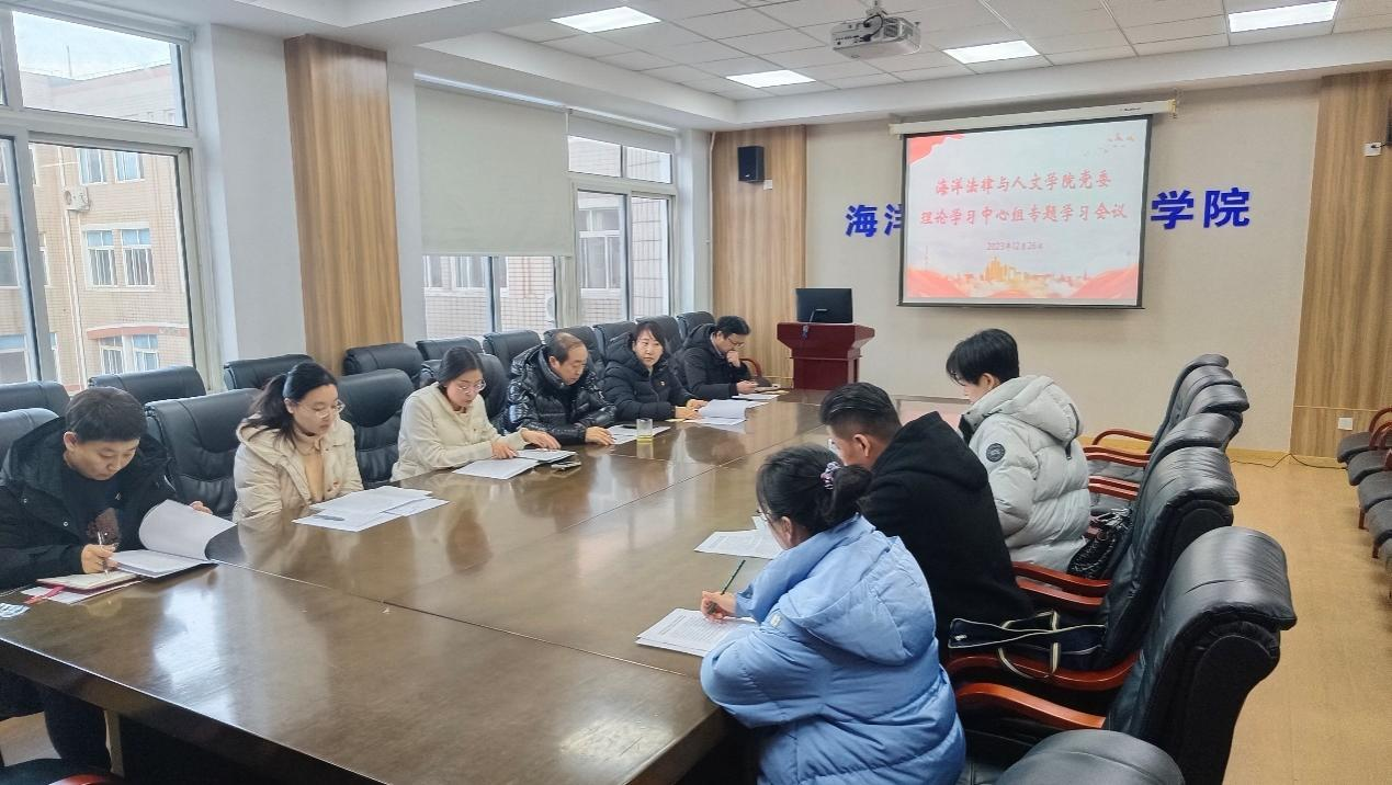 12月26日,海洋法律与人文学院党委在学院会议室召开2023年12月份理论学习中心组专题学习会议。学院党委理论学习中心组成员参加会议,会议由党委书记高雪梅主持。