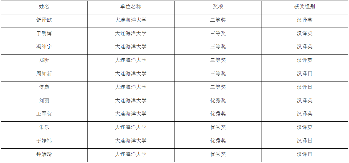 近日,2023“理解当代中国”多语种国际翻译大赛获奖结果公布,经过激烈角逐,我校学生在此次大赛中喜获佳绩,共计获得三等奖6项、优秀奖5项。