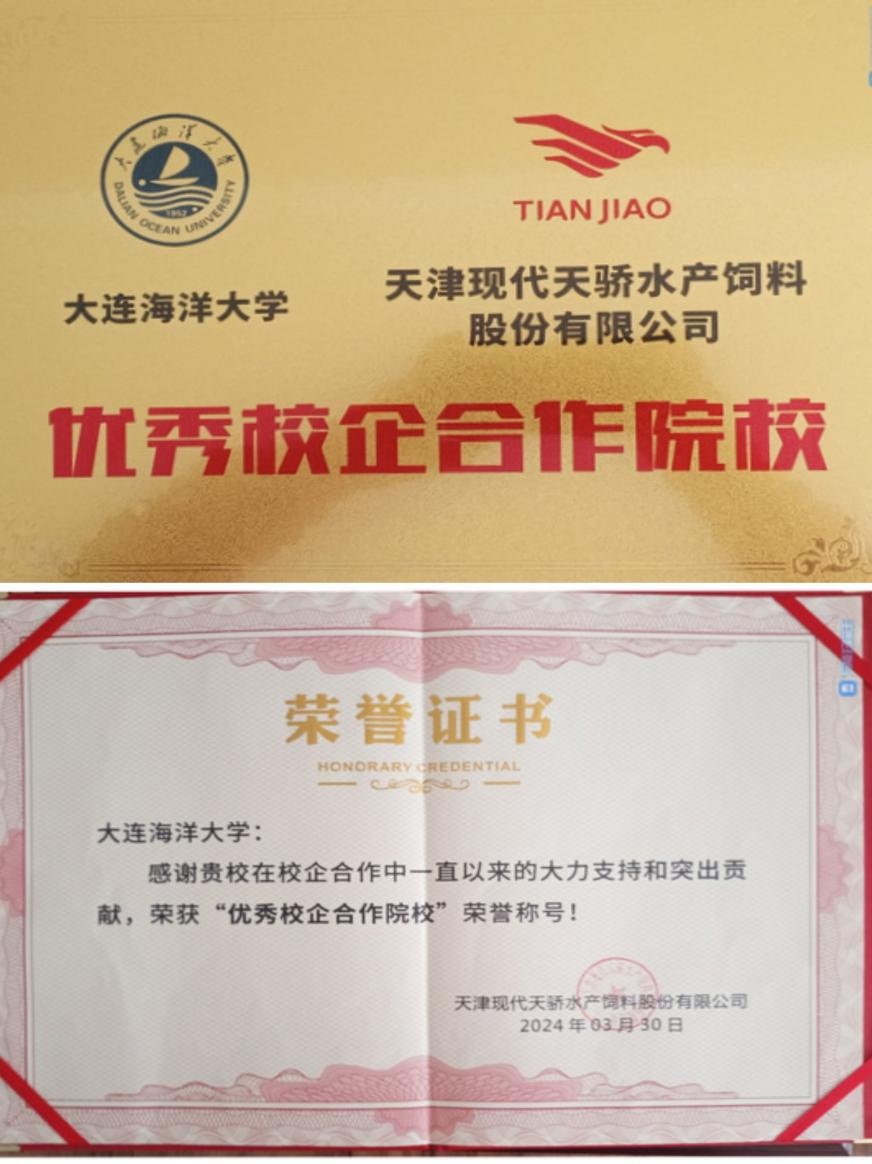 调研中,一行人与企业就教育部供需对接就业育人项目推进情况、校企共建就业实习基地的规划和科研项目研发等方面进行交流座谈。天津现代天骄农业科技股份有限公司董事长孙超介绍了企业的发展现状、未来规划、校企深度合作的意向和迫切的用人需求期盼。在“现代天骄招商合作交流会暨2023年答谢会”上,校企双方举行了共建大学生实习实践基地授牌仪式,学校还获评天骄水产2023年度优秀校企合作院校。