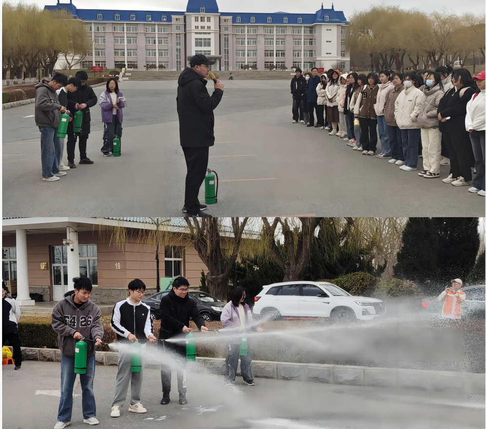 4月3日,在渤海校区活动现场,保卫处陈昊老师向学生详细地讲解了校园消防的意义及逃生自救基本常识,并指导学生正确使用灭火器材,随后组织学院200余名学生开展了疏散逃生演练活动。