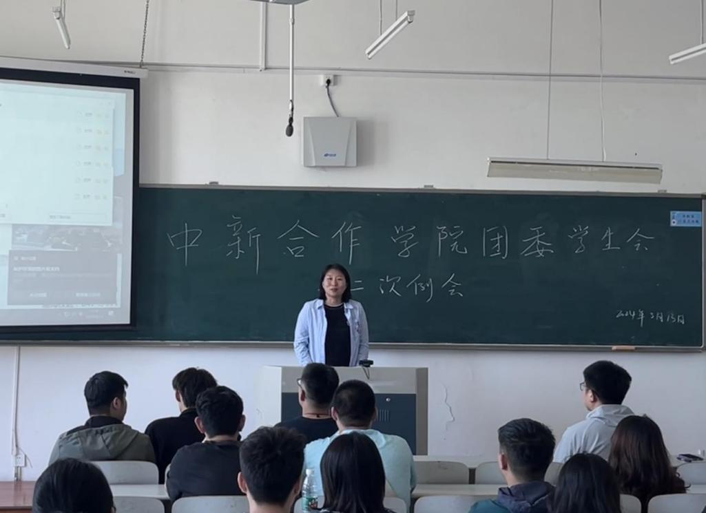 为进一步加强学院学生干部队伍建设,不断提升学生“自我管理、自我教育、自我服务”能力,5月13日,中新合作学院在獐子岛123教室召开第七届团委、学生会学生干部本学期第二次例会。学院党总支副书记沙雷、团委书记于越、辅导员刘伟健,以及院团委、学生会全体学生干部出席会议。