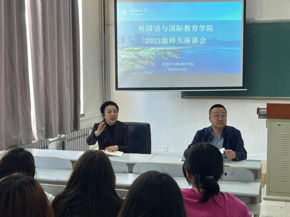 5月8日,外国语与国际教育学院在渤海校区召开期中教学检查师生座谈会。学院院长郭艳玲、副院长崔永光、本科教学秘书李祉晔以及2023级英语、日语、翻译等三个专业班长、学委和团支书参加座谈。会议由崔永光主持。