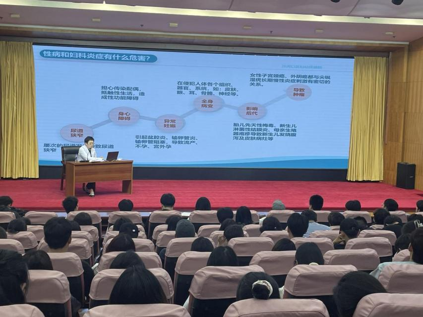 讲座特邀沙河口区妇幼保健院院长刘晨教授向大学生科普常见性传播疾病、如何避免意外怀孕、子宫颈癌预防及HPV疫苗接种的相关知识。