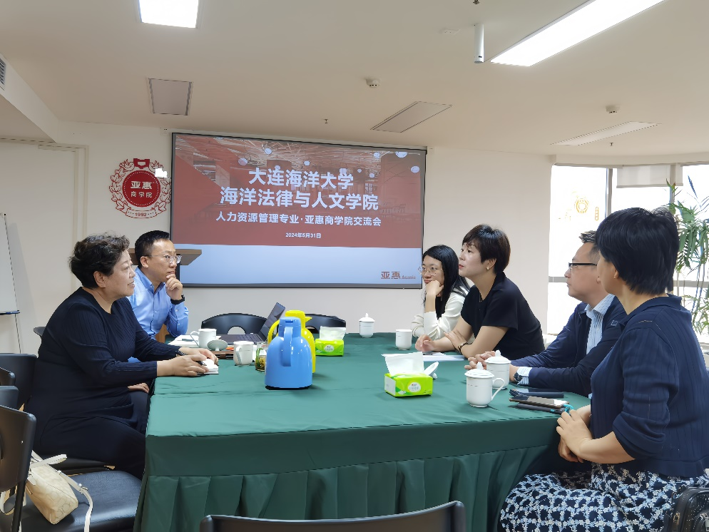 5月31日,海洋法律与人文学院人力资源管理专业与亚惠美食有限公司开展座谈会。教研室主任杜鹏、教师芦云鹏、赵晟莹、陈晓颖与亚惠美食有限公司战略合作委员会主任戚丽、亚惠商学院院长吴彦辉进行了座谈交流。