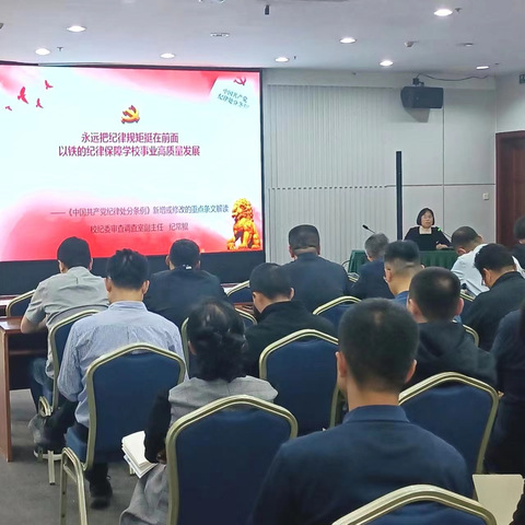 为进一步推进党纪学习教育工作走深走实,教育引导机关全体党员干部学纪、知纪、明纪、守纪,始终做到忠诚干净担当,5月30日,机关党委在图书馆多功能厅组织开展党纪学习教育专题学习。机关纪委书记、我校党纪学习教育宣讲团成员纪常鲲同志以“永远把纪律规矩挺在前面,以铁的纪律保障学校事业高质量发展”为题,为机关党员干部上了一堂既生动又深刻的纪律党课。