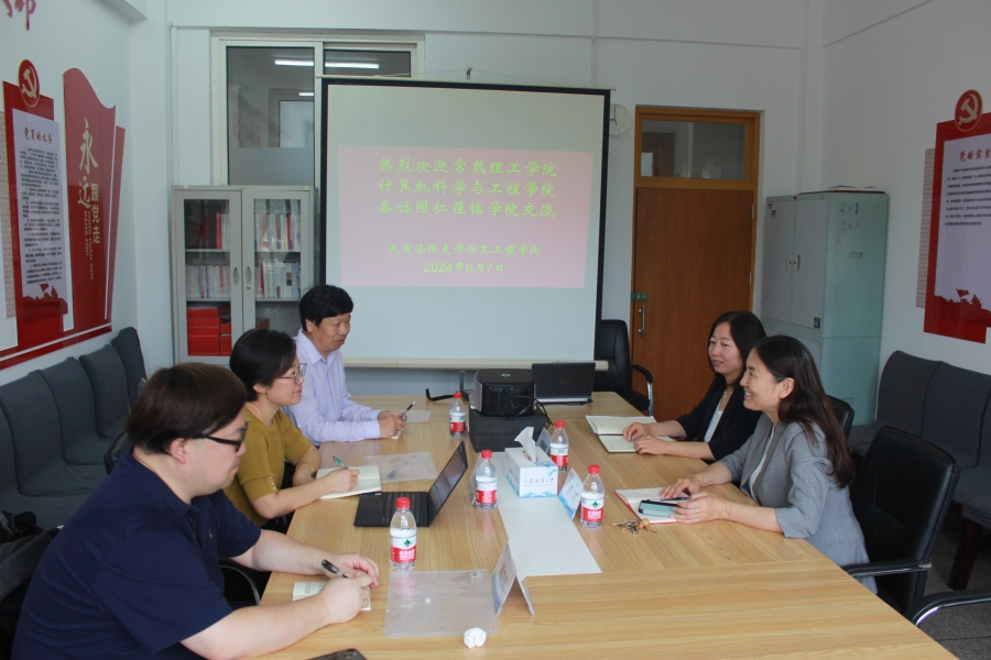 6月7日,常熟理工学院计算机科学与工程学院院长邢晓双、院长助理周立凡、教授龚声蓉一行来我校信息工程学院进行调研。学院院长于红、副院长缪新颖在党员活动室接待邢晓双一行。