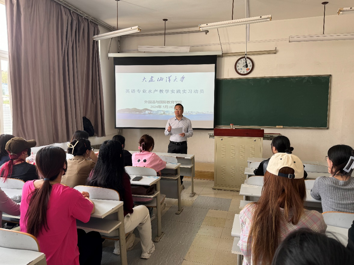 近日,外国语与国际教育学院专英教研室在渤海校区2-127召开《英语专业水产教学实践》实习动员会。学院副院长、指导教师崔永光以及英语专业2021级29名海洋经贸英语方向学生参加会议。