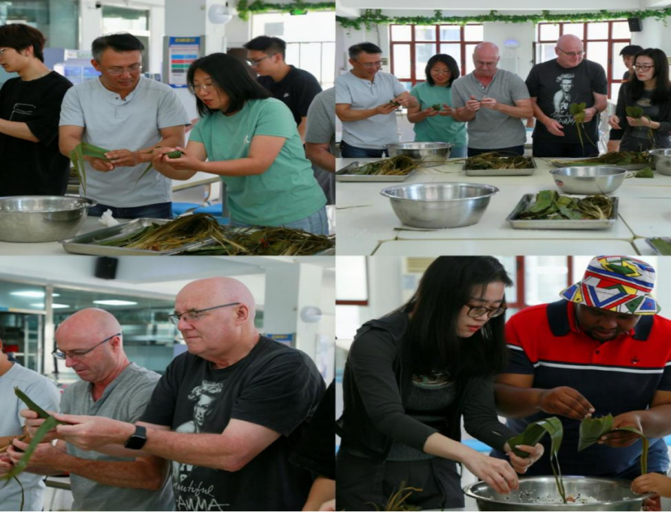 粽叶飘香,浓情端午。6月8日,中新合作学院开展“传承家国情怀,共庆端午佳节”师生包粽子活动。学院院长高巍、党总支副书记沙雷、教学秘书李博雅、辅导员刘伟健、外籍教师以及学生40余人参加活动。